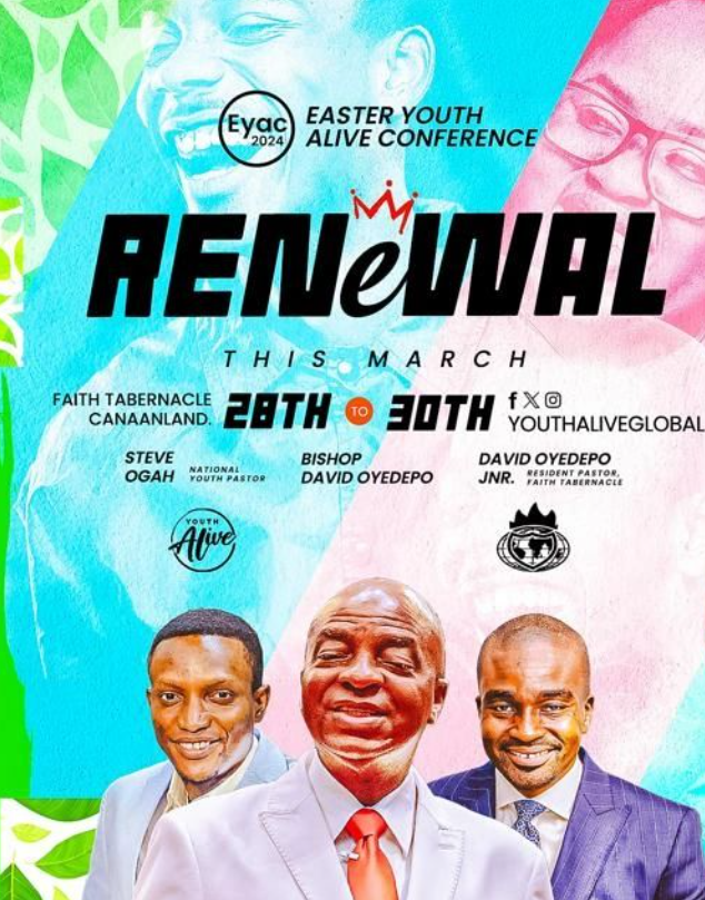 We would like to specially invite you to the Easter Youth Alive Conference organized by the Living Faith Church. This 3-day event will hold from Thursday, March 28, to Saturday, March 30, 2024 in Canaanland, Ota, Ogun State. If you are unable to be physically present, you can also join in online.