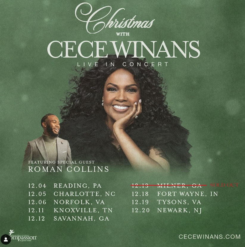 Cece Winans (and Romans Collins) will be in select US states from December 4-20, 2024 for a Christmas live in concert.