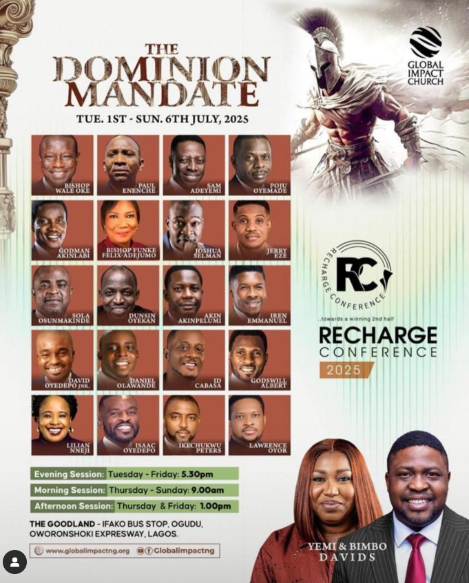 The Recharge Conference is hosted annually by Pst Yemi & Bimbo Davids of the Global Impact Church.